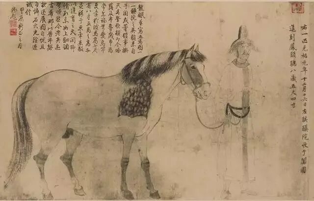 澄心堂紙不僅用于書(shū)法,也用于繪畫。據(jù)記載北宋畫家李公麟作畫不喜歡設(shè)色,多用白描,用的也是澄心堂紙。根據(jù)明代大收藏家項(xiàng)元汴考證,李公麟的傳世名作《五馬圖》用的就是澄心堂紙。