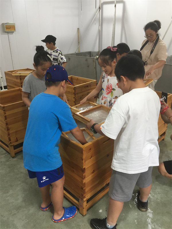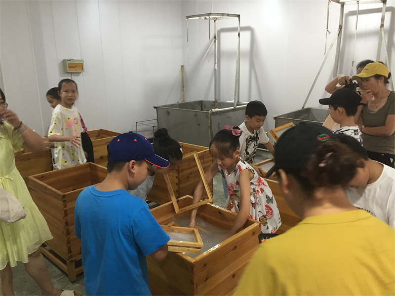 2021年8月28日,暑假的結尾,再來一波研學體驗,小朋友們學習如何撈紙,在實踐中體驗紙的生產(chǎn)不易,學會珍惜愛護用紙