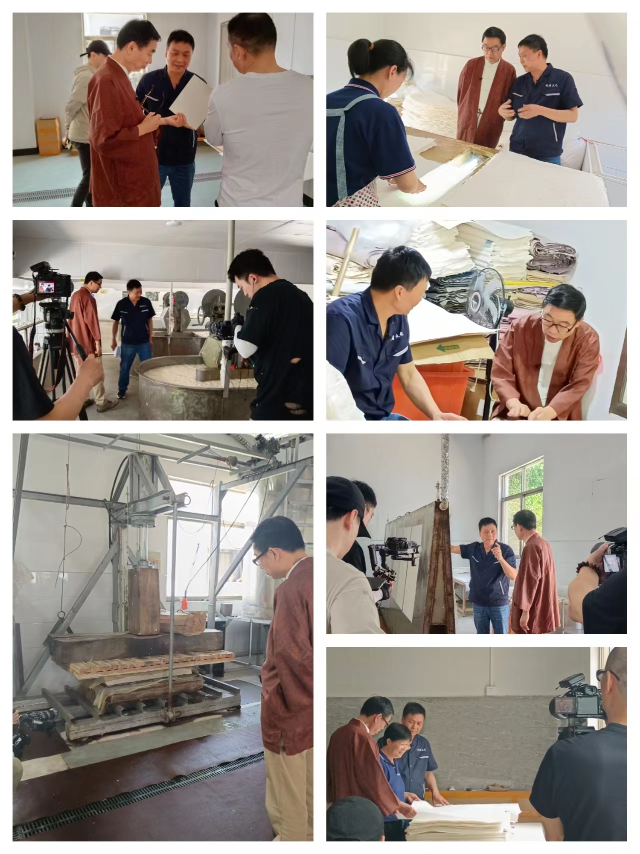 在黃山市凝霜文化發(fā)展有限公司,欄目攝制組全程記錄徽州楮皮紙第二代傳承人、非遺傳承人朱建新的徽州楮皮紙制作技藝?!段幕笥^園》總策劃、主持人王魯湘詳細(xì)了解徽州楮皮紙的優(yōu)勢(shì),制作的傳承和發(fā)展,并與徽州楮皮紙第二代傳承人朱建新面對(duì)面暢聊古法造紙和新技的結(jié)合。